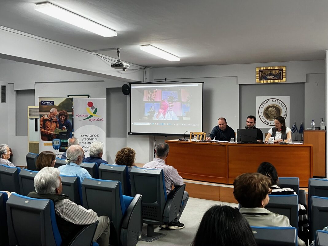Το Σάββατο 13 και την Κυριακή 14 Απριλίου 2024, πραγματοποιήθηκε διημερίδα από τον σύλλογο ατόμων με σακχαρώδη Διαβήτη Νομού Καβάλας «Γλυκιά αγκαλιά», στην δημοτική βιβλιοθήκη Καβάλας. Το Σάββατο έγινε η προβολή της μικρού μήκους ταινίας «Ζω χωρίς να σε φοβάμαι», παραγωγής του συλλόγου ατόμων με σακχαρώδη Διαβήτη Πάτρας «Ζωή γλυκιά» και ακολούθησε συζήτηση με τον ψυχολόγο, Αντώνη Πελεκάνο. Την Κυριακή διεξήχθη στρογγυλή τράπεζα για τον σακχαρώδη Διαβήτη τύπου 2, με ομιλίες του Στέφανου Παπαντωνίου, διαβητολόγου-παθολόγου, της Φανής Παπουλίδου, νεφρολόγου, του Ιωάννη Στρατάκη, καρδιολόγου και της Βασιλικής Λαζαρίδου, διατροφολόγου-διαιτολόγου. Στην διαδραστική και επιμορφωτική διημερίδα παραβρέθηκαν: ο Αρχέλαος Γρανάς, δημοτικός σύμβουλος και πρόεδρος του ΔΗ.ΠΕ.ΘΕ. Καβάλας, η Έλσα Βακιρτζή, αντιδήμαρχος κοινωνικής πολιτικής, αλληλεγγύης και πρόνοιας, αντιπρόεδρος του Εμπορικού Συλλόγου και του Κέντρο Κοινότητας Δήμου Καβάλας. Οι διοργανωτές ευχαριστούν την πρόεδρο του συλλόγου ατόμων με σακχαρώδη Διαβήτη Πάτρας, Βάσω Γούλα, για την παραχώρηση της ταινίας, τον Δήμο Καβάλας, για την παραχώρηση της αίθουσας της δημοτικής βιβλιοθήκης και το Γενικό Νοσοκομείο Καβάλας, για την συνεργασία. Ακόμα, ευχαριστούν όλους όσοι παρακολούθησαν το πρόγραμμα των δύο ημερών.