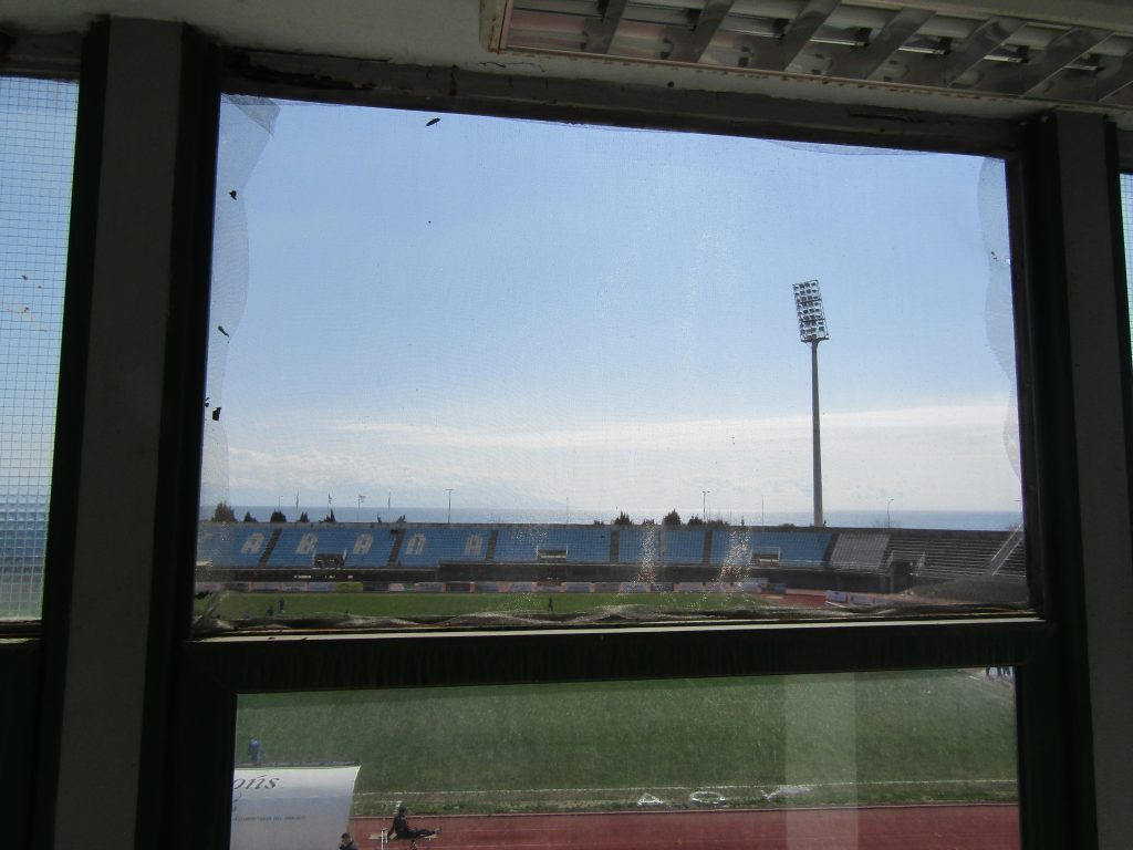 Εικόνες που δεν συνάδουν με την αισθητική και την λογική, βλέπουν οι επισκέπτες του δημοτικού σταδίου Καβάλας «Ανθή Καραγιάννη». Δημοσιεύουμε δύο χαρακτηριστικές φωτογραφίες, ενώ θα μπορούσε κάποιος να δημοσιεύσει περισσότερες. Η πρώτη δείχνει την «λιμνούλα» με το βρόχινο νερό, που σχηματίστηκε σε μία από τις θύρες του σταδίου, μετά από την νεροποντή του Σαββάτου 2 Μαρτίου 2024. Και η δεύτερη, από τα θεωρεία των δημοσιογράφων, ένα τζάμι που λείπει και αντικαταστάθηκε από κομμάτι πλέγμα! Οι εικόνες αυτές είναι αποκαρδιωτικές, για το μεγαλύτερο στάδιο της Περιφέρειας Ανατολικής Μακεδονίας-Θράκης!