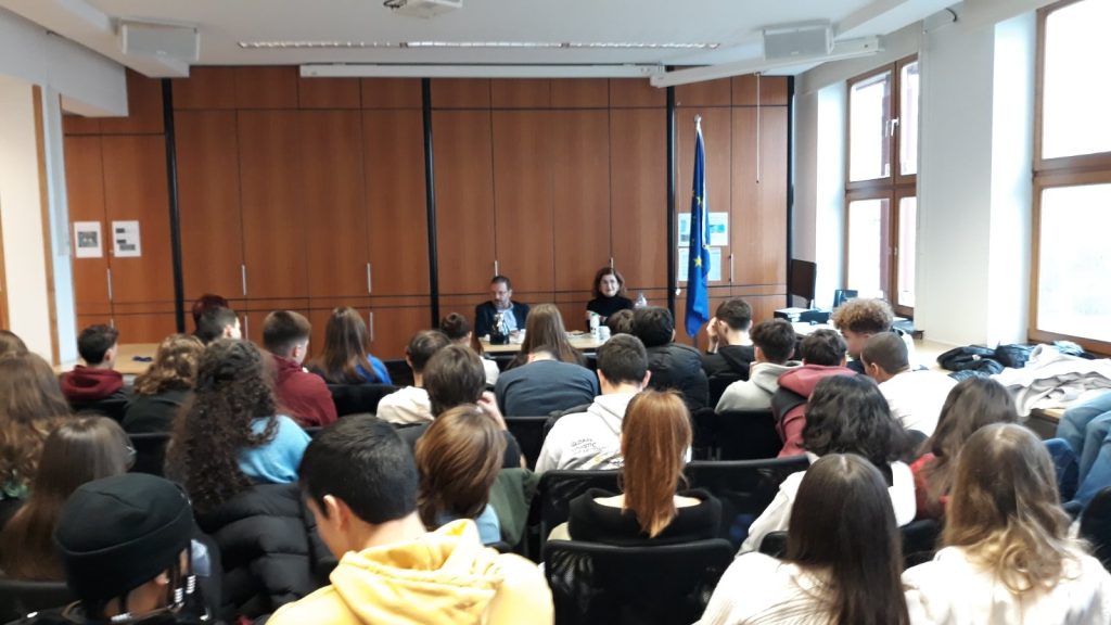 Ο Ευριπίδης Γαραντούδης, μίλησε σαν ποιητής σε νέους ανθρώπους περίεργους να μάθουν πηγές έμπνευσης, αιτίες, τρόπους έκφρασης και δημιουργικής γραφής. Εξήγησε με εκλαϊκευτικό απλουστευμένο τρόπο μεγάλα θέματα: απάντησε στο τι είναι και γιατί μας αρέσει η λογοτεχνία, με τον ορισμό της ως γνώσης της ανθρώπινης εμπειρίας με εργαλεία την συγκινησιακή φόρτιση και την καλά δουλεμένη πολυμορφία της γλώσσας, αναφέροντας πολλά παραδείγματα. Εισηγήθηκε την διεύρυνση και συγκριτική παρουσίαση στα ελληνικά σχολεία, όχι μόνο των Βρυξελλών, των ποικίλων εθνικών λογοτεχνιών μέσα στο πολυπολιτισμικό περιβάλλον των σύγχρονων κοινωνιών, που δεν πρέπει να είναι μονοσήμαντο και εθνοτικό.
