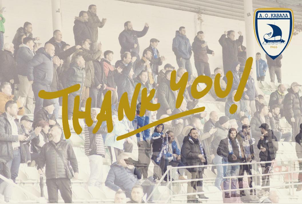 -Η παρουσία των Καβαλιωτών φιλάθλων, των πιστών φιλάθλων του Αθλητικού Ομίλου «Καβάλα» συγκεκριμένα, στην «σκεπαστή» κερκίδα του παλιού γηπέδου του Α.Ο. Ξάνθης, το οποίο χρησιμοποιεί ως έδρα το τοπικό σωματείο «Ορφέας», την περασμένη Κυριακή 22 Ιανουαρίου 2023, ήταν πραγματικά σημαντική. Όχι μόνο στον αριθμό, αλλά και στην στήριξη προς την ομάδα του ποδοσφαίρου, που έδωσε ένα δύσκολο παιχνίδι. Ορθώς η διοικούσα επιτροπή του τμήματος και η διοίκηση του Ερασιτέχνη, στην σελίδα του συλλόγου σε μέσο κοινωνικής δικτύωσης, ευχαρίστησαν τους φιλάθλους που παραβρέθηκαν στο γήπεδο και ενίσχυσαν την προσπάθεια των ποδοσφαιριστών. «Ένα μεγάλο ευχαριστώ στον φίλαθλο κόσμο μας, που ταξίδεψε στην Ξάνθη και είμαστε σίγουροι, ότι κάθε Κυριακή θα είμαστε περισσότεροι. Γιατί, αυτή η προσπάθεια και αυτή η ομάδα, αξίζουν την υποστήριξη όλων μας», αναφέρει το ευχαριστήριο μήνυμα και προσθέτει: «Ο Α.Ο.Κ. είναι ο κόσμος του, είναι η πόλη και ο Νομός, είναι αυτοί που πάντα στα δύσκολα ήταν εκεί, στις βροχές, στα κρύα και στις δύσκολες στιγμές. Γι’ αυτό το «καραβάκι» έως τώρα, άντεξε όλες τις μεγάλες φουρτούνες που πέρασε, γι’ αυτό δεν λύγισε και δεν γονάτισε».