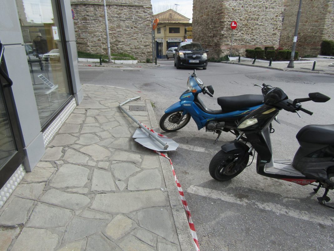 Στην συμβολή των οδών Ελληνικής Δημοκρατίας και Παλιού Υδραγωγείου, απέναντι από τις Καμάρες, κάποιος «καθαίρεσε» την πινακίδα οδικής σήμανσης. Ούτως, ή άλλως, ελάχιστοι οδηγοί λάμβαναν υπόψη την πινακίδα αυτή, με αποτέλεσμα να έχουν συμβεί (τροχαία) ατυχήματα στο σημείο εκείνο. Η διπλή πινακίδα επιβάλλει στους οδηγούς των οχημάτων που κινούνται στην οδό Παλιού Υδραγωγείου να σταματήσουν και να παραχωρήσουν την προτεραιότητα δεξιά και αριστερά τους.