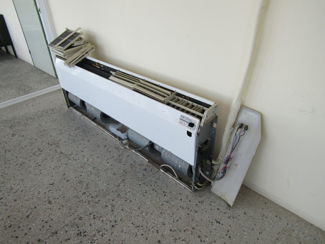 Πέρα από την ανάγκη να γίνει εκτεταμένη ανακαίνιση στα θεωρεία του δημοτικού σταδίου Καβάλας, «Ανθή Καραγιάννη», πρέπει να απομακρυνθούν μερικά παλιά, κατεστραμμένα και επικίνδυνα μηχανήματα, όπως το κλιματιστικό στην φωτογραφία που δημοσιεύουμε. Τα εκτεθειμένα καλώδια του μηχανήματος, είναι κίνδυνος για τυχόν ηλεκτροπληξία των επισκεπτών των θεωρείων. Επίσης, πρέπει να αντικατασταθούν τα παλιά κουφώματα, από την εποχή που κατασκευάστηκε το στάδιο, να στεγανοποιηθεί η οροφή και γενικότερα, να γίνει μία ολοκληρωμένη μελέτη για την διαμόρφωση σύγχρονων θεωρείων.