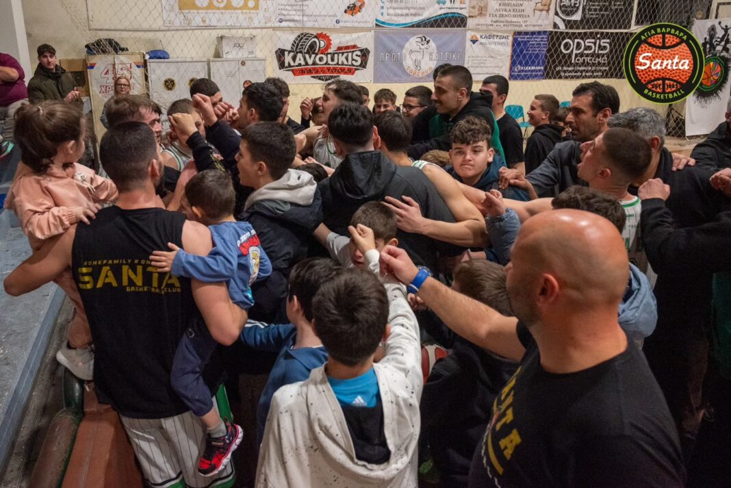 Στην 4η περίοδο του αγώνα, η Αγία Βαρβάρα έκανε την ανατροπή και πήρε την νίκη απέναντι στον Όλυμπο Κορδελιού. Η ομάδα του Κορδελιού ήταν δύσκολη αντίπαλος, αλλά στην τελευταία περίοδο «λύγισε» και ηττήθηκε με επιμέρους σκορ 21-7. Το τελικό σκορ ήταν 72-64 και η Αγία Βαρβάρα απέφυγε μία ακόμα ήττα εντός έδρας. Το σκορ ανά περίοδο ήταν: 11-17, 18-14, 22-26, 21-7 και η σύνθεση της Αγίας Βαρβάρας η ακόλουθη: Μαρκόπουλος 19 πόντοι (2 τρίποντα), Ποντικάκης 5(1 τρ.), Μπόζης 10, Ε. Ιωαννίδης 2, Μάρκου 13(2 τρ.), Πρεμέτης 17(1 τρ.), Πέπα, Μπανασάς 2, Γεωργιάδης 4, Μοσχόπουλος.