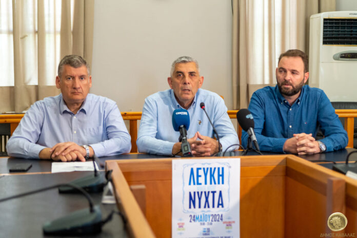 Περίπου σαράντα εκδηλώσεις στο κέντρο της πόλης, θα πραγματοποιηθούν την Παρασκευή 24 Μαΐου 2024, από τις 7 το απόγευμα έως τις 12 τα μεσάνυχτα, στο πλαίσιο της «Λευκής Νύχτας» του Εμπορικού Συλλόγου Καβάλας. «Για μία ακόμα χρονιά, ο Δήμος Καβάλας ενισχύει οικονομικά, αλλά και πρακτικά, με την συμβολή των Υπηρεσιών του, την «Λευκή Νύχτα». Πρόκειται για μία διοργάνωση που αγαπήθηκε από τον κόσμο κι έγινε θεσμός. Καλώ τους συμπολίτες να κατέβουν στο κέντρο της πόλης και να ζήσουμε μία πρωτόγνωρη εμπειρία», δήλωσε ο Απόστολος Μουμτσάκης, αντιδήμαρχος πολιτισμού Δήμου Καβάλας, στην συνέντευξη Τύπου που δόθηκε στο Δημαρχείο, στην αίθουσα συνεδριάσεων του δημοτικού συμβουλίου, την Τετάρτη 22 Μαΐου 2024. Παρόντες ήταν: ο πρόεδρος του Εμπορικού Συλλόγου, Γιάννης Κελγιώργης και ο υπεύθυνος Γενικού Εμπορικού Μητρώου (Γ.Ε.ΜΗ.) του Επιμελητηρίου, Γιάννης Κούτρας.