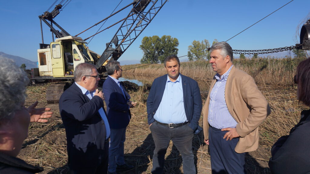 Ο Χρ. Τοψιδης συνέχισε το πρόγραμμα των επισκέψεων στην Περιφερειακή Ενότητα Καβάλας μεταβαίνοντας στα τενάγη Φιλίππων, όπου γίνεται καθαρισμός και εμβάθυνση της κεντρικής τάφρου, με σκοπό να διευκολυνθεί η άρδευση των χωραφιών. «Η Περιφέρεια κάνει μία προσπάθεια, για να διατηρήσει τα τενάγη και την παρατενάγια περιοχή, σε μία όσο το δυνατό καλύτερη κατάσταση, ώστε οι γεωργοί της περιοχής να μπορούν να παράγουν. Κι αυτό όχι με λόγια, αλλά με έργα. Κανένας άλλος φορέας, εκτός από την Περιφέρεια, δεν εκτελεί έργα στην περιοχή αυτή», είπε και ανακοίνωσε την εκπόνηση μελέτης, για την βελτίωση των καλλιεργητικών συνηθειών που υπάρχουν στην περιοχή. Ο αντιπεριφερειάρχης Καβάλας ανέφερε ότι: «Επισκεφτήκαμε με τον περιφερειάρχη το έργο στην κεντρική τάφρο, ένα έργο που εκτελείται για πολλά χρόνια και σκοπό έχουμε να διατηρήσουμε το υδατικό ισοζύγιο σε ένα όσο πιο ικανοποιητικό επίπεδο. Τα τενάγη είναι μοναδικά στην Ευρώπη και το πρόβλημα που μαστίζει την περιοχή, είναι αυτό της λειψυδρίας και γι’ αυτό το έργο της Περιφέρειας έχει μεγάλη αξία, γιατί προσπαθεί να συμβάλλει στον μετριασμό του προβλήματος». Στην αναπτυξιακή διάσταση του έργου και στην συμβολή του πρωτογενούς τομέα στην οικονομία της Περιφέρειας, αναφέρθηκε ο αντιπεριφερειάρχης ανάπτυξης, Αλ. Ιωσηφίδης.