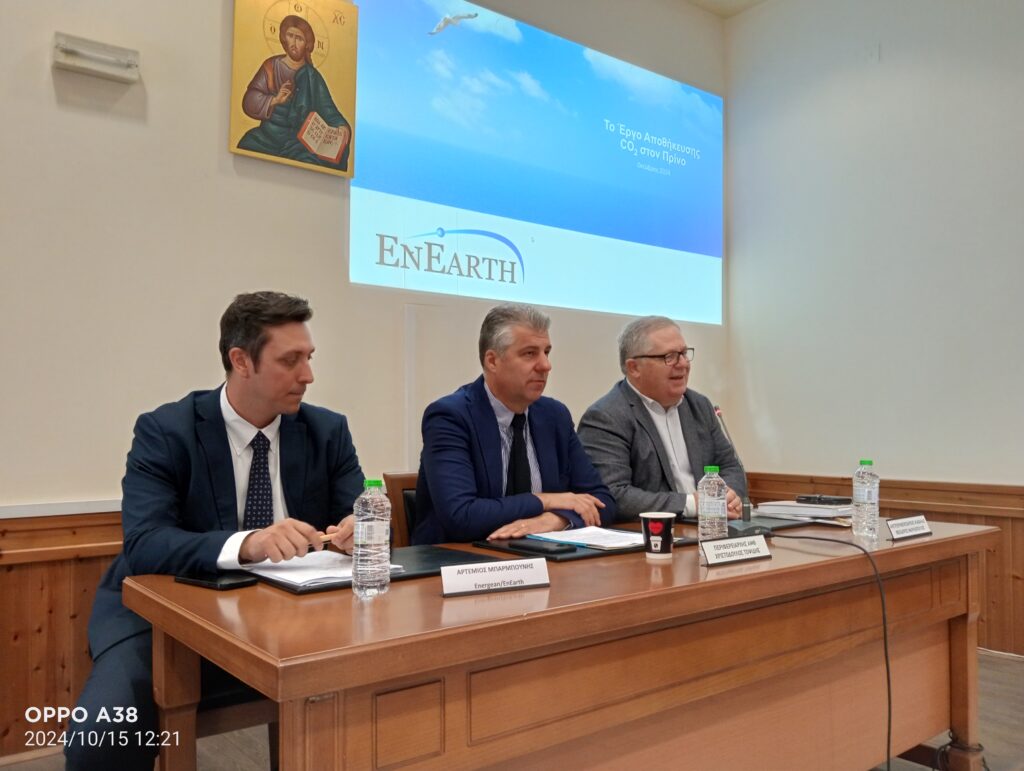 Η εταιρεία EnEarth, θυγατρική του ομίλου Energean, έκανε ενημέρωση για την επένδυση αποθήκευσης διοξειδίου του άνθρακα (CO2) στο θαλάσσιο πεδίο του «Πρίνου». Η ενημέρωση έγινε στην αίθουσα «Νικόλαος Μάρτης» του Διοικητηρίου Περιφερειακής Ενότητας Καβάλας και συμμετείχαν: ο περιφερειάρχης Ανατολικής Μακεδονίας-Θράκης, Χριστόδουλος Τοψίδης, ο αντιπεριφερειάρχης Καβάλας, Θεόδωρος Μαρκόπουλος, οι θεματικοί αντιπεριφερειάρχες, Αλέξανδρος Ιωσηφίδης, Αργύρης Πατακάκης, Παναγιώτης Αρχοντής, Γιώργος Δαλακούρας και ο εντεταλμένος περιφερειακός σύμβουλος για θέματα απασχόλησης και αθλητισμού, Στέλιος Ιγνατιάδης.