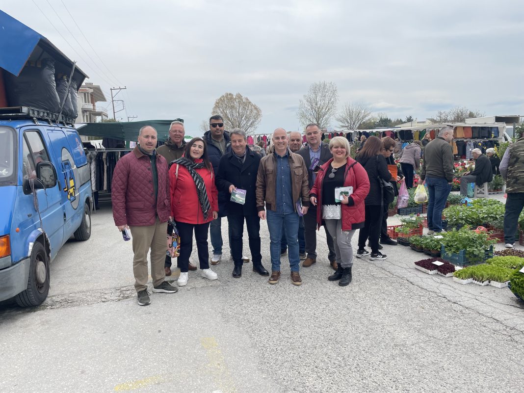 Η Νομαρχιακή Επιτροπή Καβάλας του Πα.Σο.Κ.-Κινήματος Αλλαγής, με επικεφαλής τον γραμματέα, Κωνσταντίνο-Κάρολο Παπαδόπουλο, τον Αναστάσιο Τσολάκη, τον περιφερειακό σύμβουλο και θεματικό αντιπεριφερειάρχη ανάπτυξης, Αρχέλαο Γρανά και τους υποψήφιους βουλευτές: Χρήστο Καϊντατζόπουλο, Σοφία Μαρτίδου-Χατζηβασιλειάδου, Δημήτρη Παπουτσή, Λεωνίδα Παππά, Ευστρατία Χριστοδούλου, επισκέφτηκαν την Μεγάλη Τρίτη 11 Απριλίου 2023 την λαϊκή αγορά στην Χρυσούπολη.