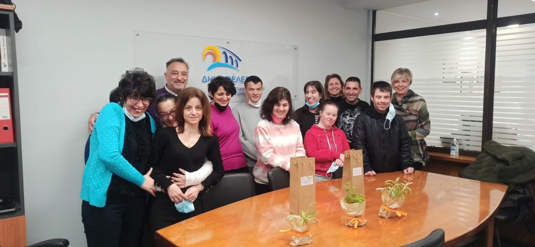 Εγκάρδιες ευχές για τις ημέρες του Πάσχα, με το προσωπικό και τους εκπαιδευόμενους του ΚΔΑΠ-ΑμεΑ, αντάλλαξαν ο δήμαρχος Καβάλας, Θεόδωρος Μουριάδης, ο πρόεδρος της δημοτικής κοινωφελούς επιχείρησης «Δημωφέλεια», Παναγιώτης Αγγελίδης και η γενική διευθύντρια της επιχείρησης, Άλκηστις Βλάχου, κατά την επίσκεψη των ωφελούμενων της δομής στο δημαρχείο και στα γραφεία της «Δημωφέλεια».