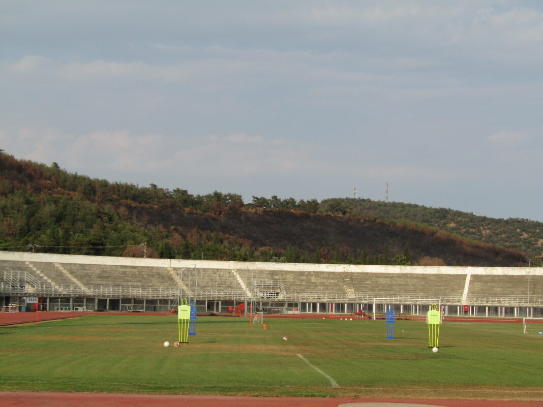Μία λυπηρή εικόνα θα βλέπουν οι θεατές των αγώνων ποδοσφαίρου στο στάδιο «Ανθή Καραγιάννη» την προσεχή αγωνιστική περίοδο. Πίσω από την ανατολική κερκίδα (πέταλο) «δεσπόζει» το καμένο τμήμα του περιαστικού δάσους. Ας ευχηθούμε το δάσος να αναγεννηθεί και να εκλείψει η δυσάρεστη θέα.