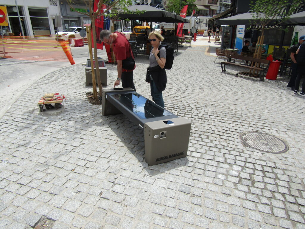 Τοποθετήθηκαν στην πλατεία Ελευθερίας και στο πεζοδρόμιο απέναντι από το παλιό δικαστικό μέγαρο, οι δύο ηλεκτρονικές οθόνες με μηνύματα που προβάλλουν την Καβάλα και ενημερώνουν τους επισκέπτες της πόλης. Επίσης, στο πεζοδρόμιο απέναντι από το παλιό δικαστικό μέγαρο τοποθετήθηκαν τα «έξυπνα» παγκάκια, στο πλαίσιο του έργου του ανοιχτού εμπορικού κέντρου Αγίου Νικολάου. Είναι οι «τελικές πινελιές» του έργου, ενώ συνεχίζεται η αναδιαμόρφωση της οδού Κουντουριώτου.