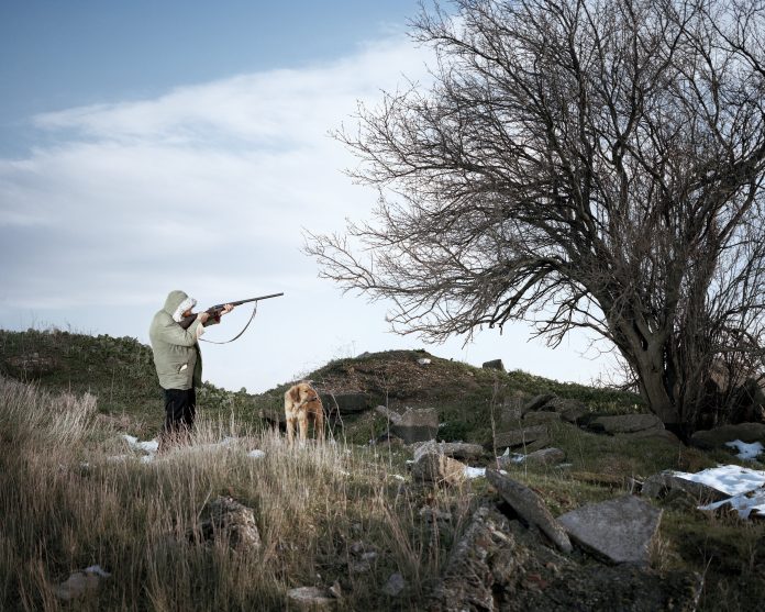 Αυτή η σειρά εικόνων, είναι αποτέλεσμα τεσσάρων ετών οδοιπορικής εξερεύνησης του ελληνικού τοπίου. Οι εικόνες αποκαλύπτουν μία προσωπική καταγραφή της σύγχρονης περαστικής κοινωνίας, με στόχο την απεικόνιση μιας μεταβατικής κατάστασης μεταξύ παρελθόντος, παρόντος και μέλλοντος. Συνδυάζοντας πορτρέτα, τοπία, εσωτερικούς χώρους και λεπτομέρειες, το «The Hunter, The Woman & The Hut», καταγράφει θραύσματα από τρόπους ζωής διαφορετικούς από τους γνωστούς της σύγχρονης αστικής κοινωνίας, με κοινό άξονα το ελληνικό τοπίο. Άνθρωποι κοντά στην φύση, ο κυνηγός, η καλύβα, στοιχεία όπως, η ελληνική προτομή στην είσοδο ενός σπιτιού και το μακεδονικό παλάτι προς πώληση, περιγράφουν μία κατάσταση μεταξύ ουτοπίας και δυστοπίας, αλλά ταυτόχρονα λειτουργούν και ως καθοδηγητικοί άξονες μιας νοσταλγικής αφήγησης, με την οποία ο θεατής ενθαρρύνεται να πάρει μέρος.