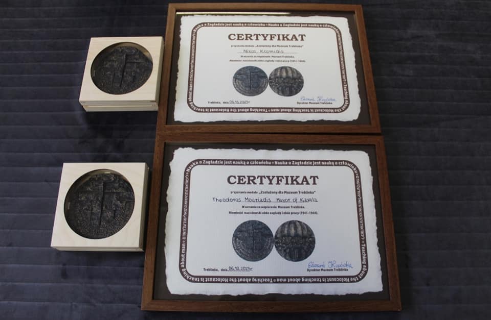 Το μετάλλιο «Άξιος για το μουσείο Τρεμπλίνκα» απονεμήθηκε στον δήμαρχο Καβάλας, Θόδωρο Μουριάδη, για την πρωτοβουλία της δημιουργίας του δικτύου πόλεων κατά του αντισημιτισμού. Το μετάλλιο παρέλαβε ο πρόεδρος του δημοτικού συμβουλίου, Κωνσταντίνος Πεφάνης, ο οποίος εκπροσώπησε τον Δήμο Καβάλας στις εκδηλώσεις που διοργανώθηκαν από το ίδρυμα «Αγία Μαρίνα», υπό την αιγίδα του Υπουργείου εξωτερικών της Πολωνίας, με θέμα τα εγκλήματα των Ναζί στην Ευρώπη κατά τον β΄ παγκόσμιο πόλεμο.