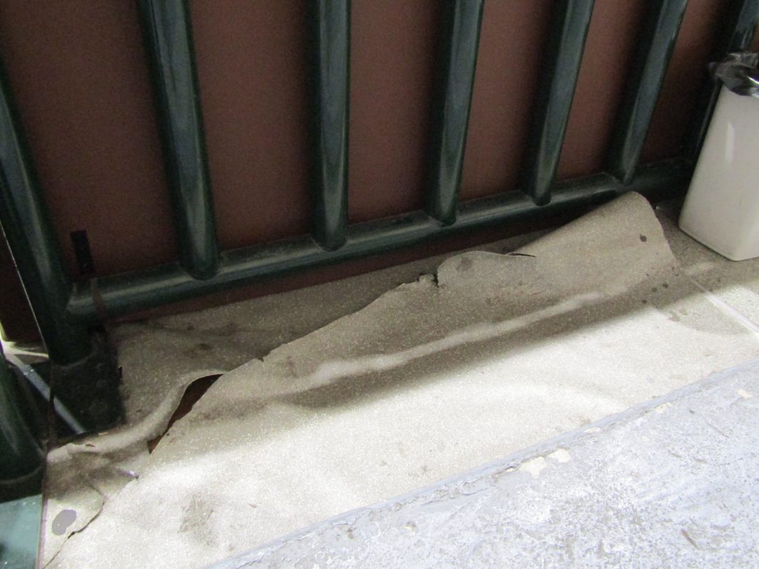 Στην φωτογραφία που δημοσιεύουμε, είναι το προστατευτικό κάλυμμα του ξύλινου δαπέδου στον στενό διάδρομο μπροστά από την κερκίδα, το οποίο καταστράφηκε και χρειάζεται αντικατάσταση. Άραγε, πόσο καιρό ακόμα θα διεξάγονται παιχνίδια πρωταθλημάτων στο γυμναστήριο των Ποταμουδίων;