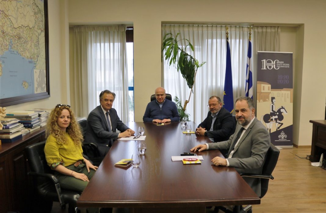 Η στήριξη των δράσεων των Δημοτικών Περιφερειακών Θεάτρων (ΔΗ.ΠΕ.ΘΕ.) Καβάλας και Κομοτηνής, από την Περιφέρεια Ανατολικής Μακεδονίας-Θράκης, ήταν το αντικείμενο της συνάντησης που είχε ο περιφερειάρχης, Χρήστος Μέτιος, με τον δήμαρχο Κομοτηνής, Γιάννη Γκαράνη, τους προέδρους των ΔΗ.ΠΕ.ΘΕ. Καβάλας, Σωκράτη Μποζούδη και Κομοτηνής, Νότη Χαραλαμπίδη και την καλλιτεχνική διευθύντρια του ΔΗ.ΠΕ.ΘΕ. Καβάλας, Εύα Οικονόμου-Βαμβακά.