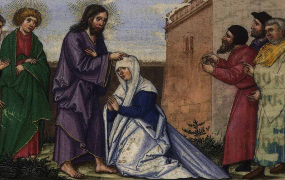 Στην Συναγωγή, όμως, βρίσκεται και ο Χριστός. Είναι Σάββατο και είναι ημέρα αφιερωμένη στον Θεό. Αυτή την ημέρα συναντά και η πάσχουσα τον Χριστό, ή θα λέγαμε ότι ο Χριστός ήρθε να την συναντήσει, χωρίς εκείνη να το γνωρίζει και της αναγνωρίζεται η ευλάβεια, η ευσέβεια, η υπομονή και ο κόπος της. Δεν ζητά από τον Θεό κάτι, ούτε παρακαλά τον Χριστό να την λυτρώσει από το πρόβλημά της. Όλα τα παραπάνω συντελούν, ώστε μόλις την αντικρύσει ο Χριστός, με έναν και μόνο λόγο του, να την απαλλάξει από το ορθοπαιδικό πρόβλημά της, για να προκαλέσει την αντίδραση του αρχισυναγώγου, στο ότι δεν τήρησε την αργία του Σαββάτου και θεράπευσε ασθενή. «Τα ζώα δεν έχουν ανάγκη από νερό την ημέρα του Σαββάτου; Δεν λογίζεται για εργασία, την ημέρα του Σαββάτου, το να λύσεις το σχοινί που έχεις δεμένο το ζώο στον στάβλο και να το οδηγήσεις στον τόπο που θα πιει νερό;». Με αυτή την σκέψη, ο Χριστός εκθέτει την υποκρισία των ανθρώπων, που ενώ είχαν βρει τρόπο για την εξυπηρέτηση των οικόσιτων ζώων τους, εν τούτοις υπολείπονταν του ενδιαφέροντος για τον συνάνθρωπό τους και μάλιστα, την ημέρα που ήταν αφιερωμένη στον Θεό.