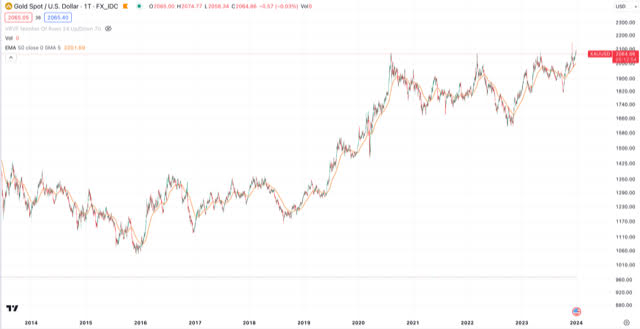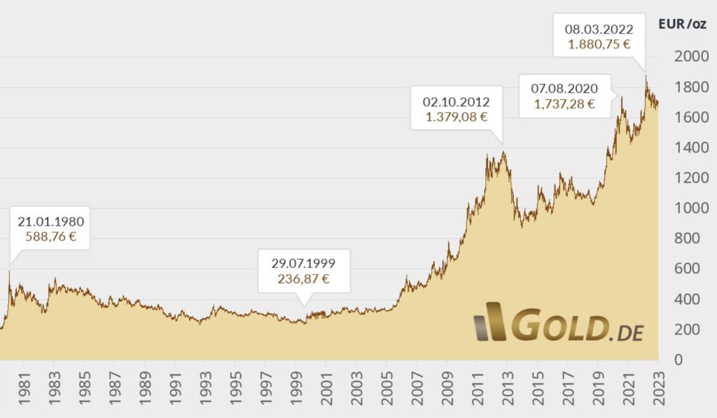 Η τιμή του χρυσού ανά ουγγιά σε ευρώ ανήλθε σε νέο υψηλό ρεκόρ το τέταρτο τρίμηνο του 2023, συμβαδίζοντας εντυπωσιακά με την άνοδο των επιτοκίων.  Ωστόσο, εάν η ΕΚΤ περιμένει περισσότερο από τη Fed για να μειώσει τα επιτόκια, τότε μια αύξηση σε EUR/USD θα επιβράδυνε την τιμή του χρυσού σε ευρώ.