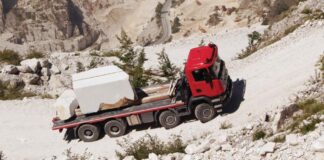 Έσπασε ο ιμάντας που κρατούσε όγκο μαρμάρου πάνω σε φορτηγό στην...