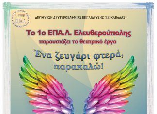 «Ένα ζευγάρι φτερά, παρακαλώ!», η θεατρική πρόταση του 1ου ΕΠΑ.Λ. Ελευθερούπολης